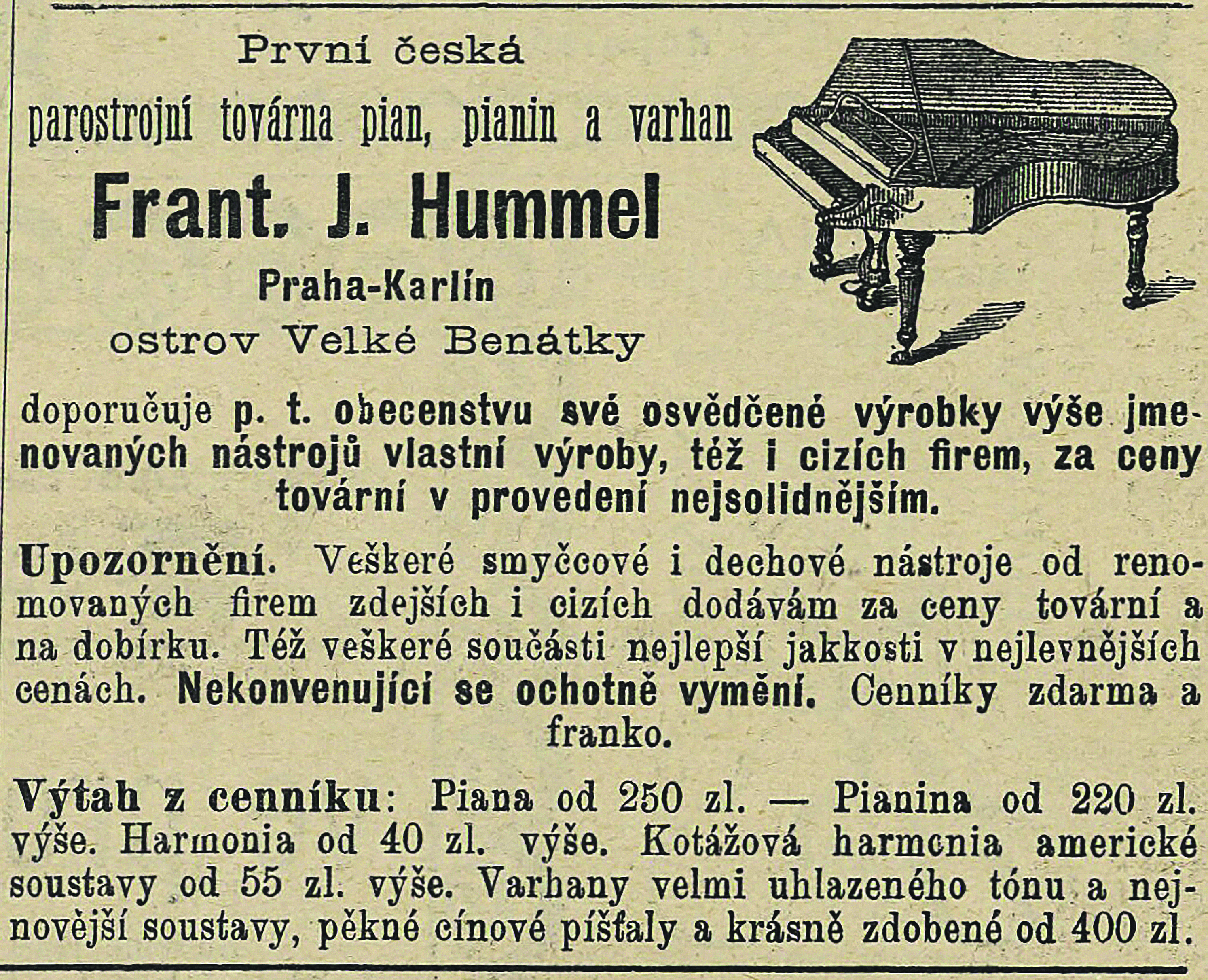 Na Štvanici sídlila i řada nejrůznějších firem. Jednou z nejzajímavějších byla dílna Františka Hummela, ve které se vyráběla piana. Hummel také obchodoval s dalšími hudebními nástroji. Ještě před první světovou válkou přestěhoval svou továrničku do Holešovic – do ulice Na Maninách.