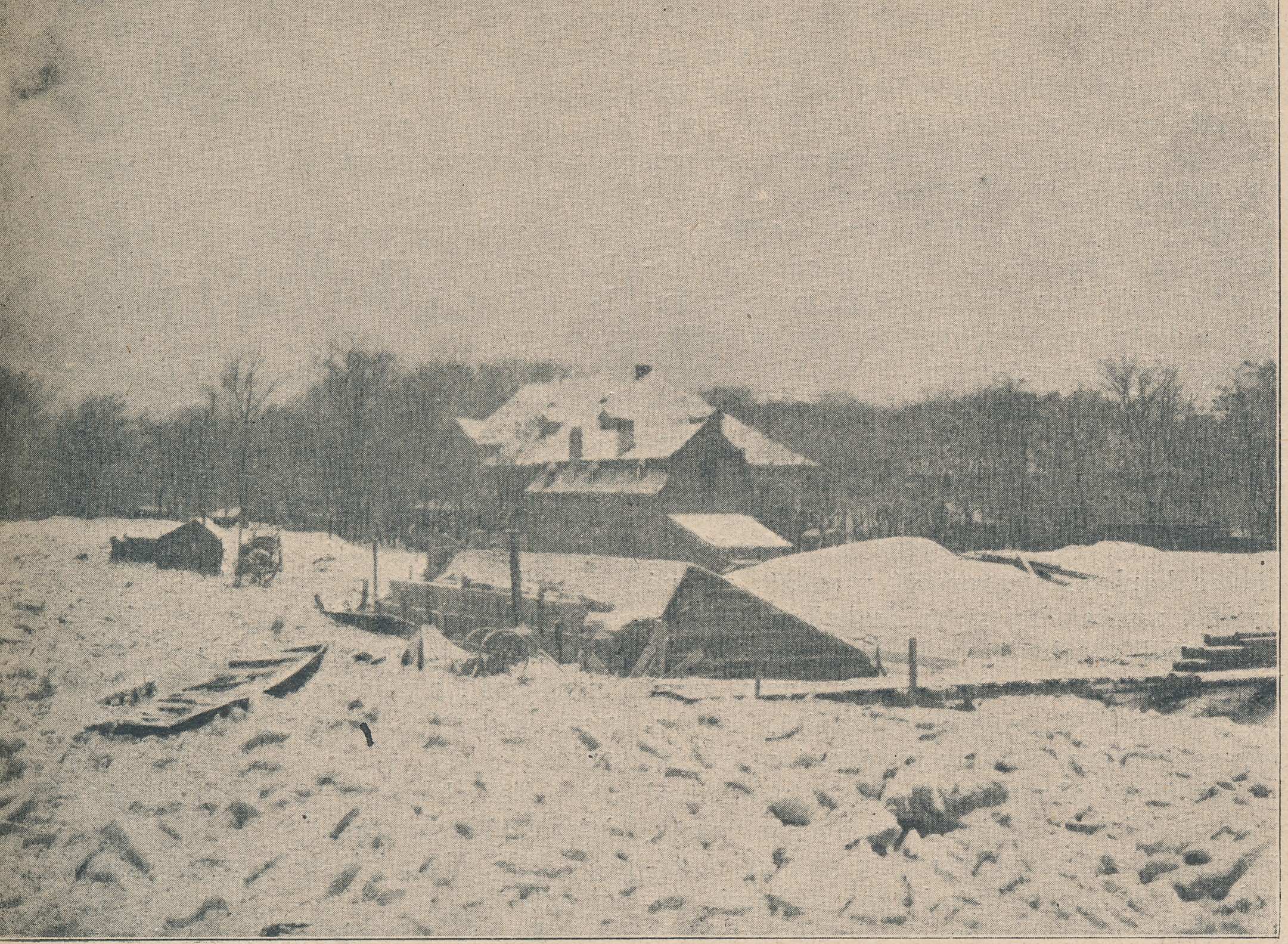 Kry pokrývající ostrov během únorové povodně v roce 1909