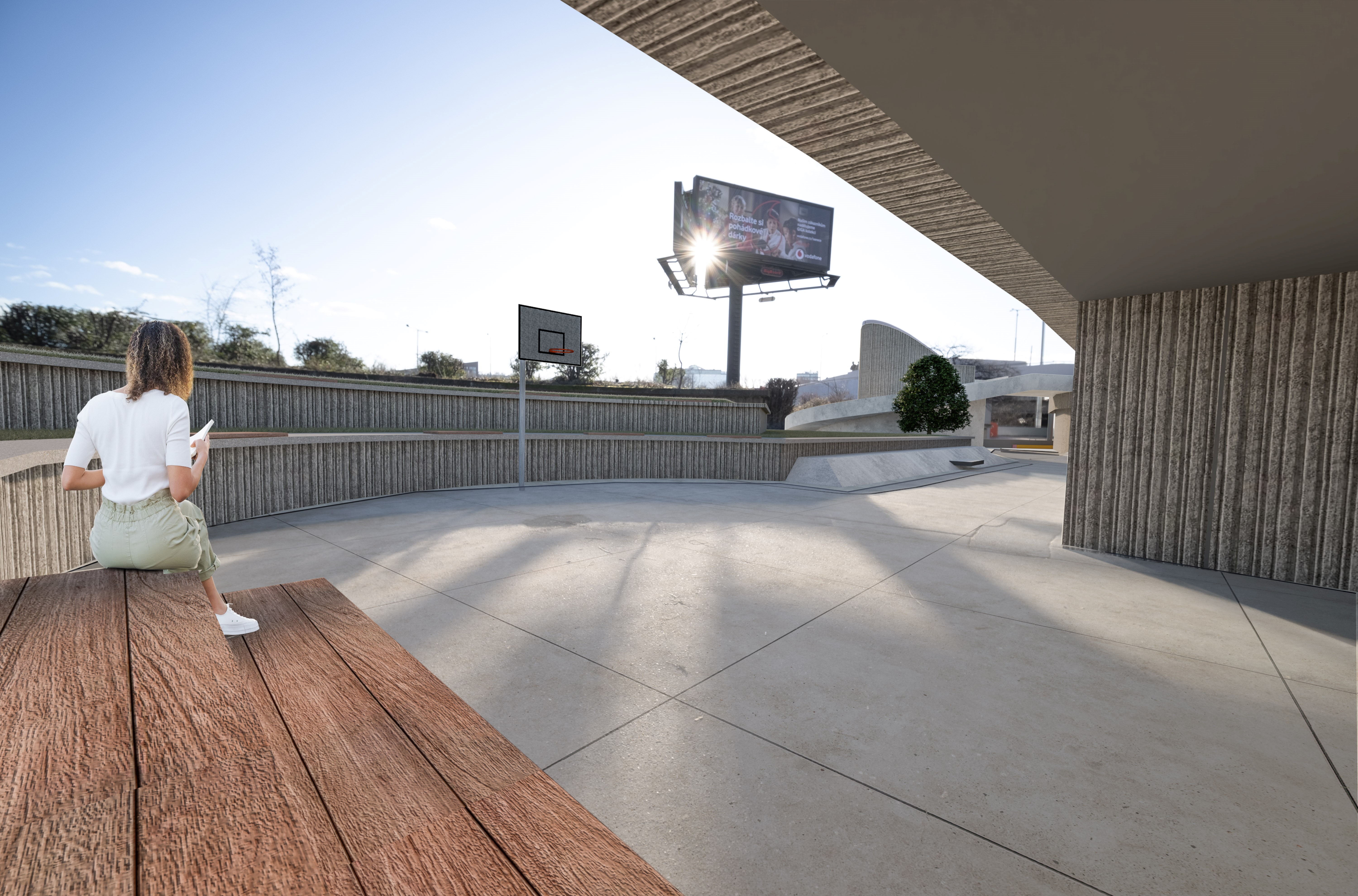 Výstavbě areálů skateparků a jejich začlenění do struktury města se v našem prostředí nevěnuje příliš pozornosti. Jak ale ukazují mnohé příklady ze zahraničí, mohou se z nich stát vyhledávaná veřejná prostranství, kde svůj volný čas tráví především mladá generace. Skateparky pak nemusí sloužit jen jako sportovní plocha pro úzkou subkulturu, ale mohou se v nich odehrávat další společenské akce. Studio U / U složené z architektů, inženýrů a grafických designérů vzniklo právě za účelem kultivace těchto prostředí s ohledem na širší urbanistické vazby, svou inspiraci přitom čerpají primárně ve Skandinávii. V roce 2018 dokončilo například volnočasový areál v pražských Čakovicích, letos zase skatepark na Výstavišti Praha. Sportovní centrum v podchodech bude jejich další realizací na Sedmičce.