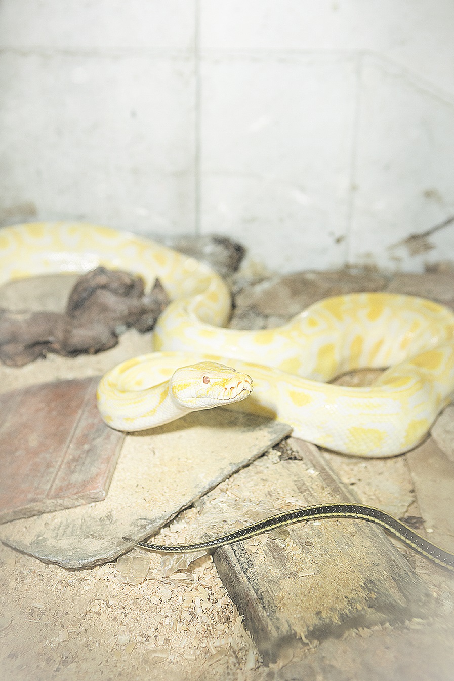 Ano, mám radost, že dětí nám stále přibývá, momentálně zde fungují tři oddíly různých věkových kategorií. Máme tam varánka, agamky, dvě krajty mřížkované, s nimi bydlí hroznýš, pak dvě krajty tmavé, z nichž jedna je spíš do světla a ta druhá je vysloveně albín. Pak tam máme užovku stromovou, kterou mají ve znaku lékaři a na stromech nežije, pak taky korálovky nebo užovku levhartí a tenkoocasou a také skákajícího pagekona Rhacodactylus ciliatus.