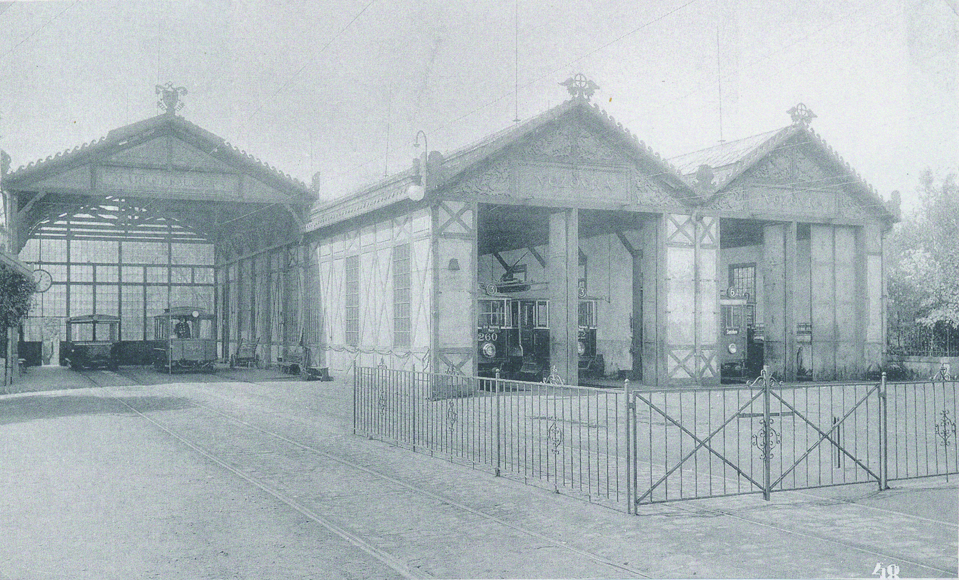 Původní tramvajová vozovna ve Stromovce před první světovou válkou.