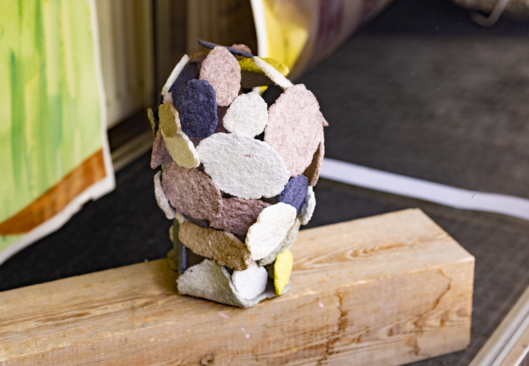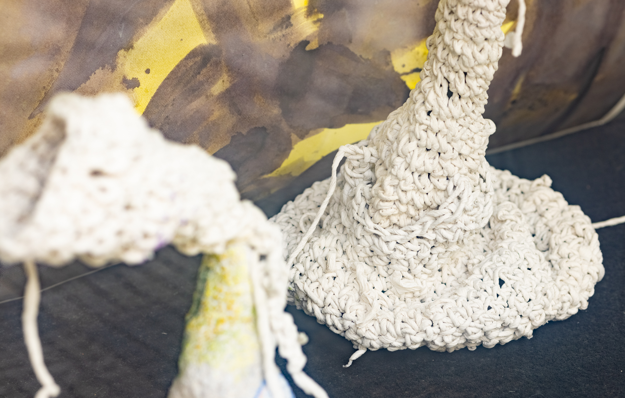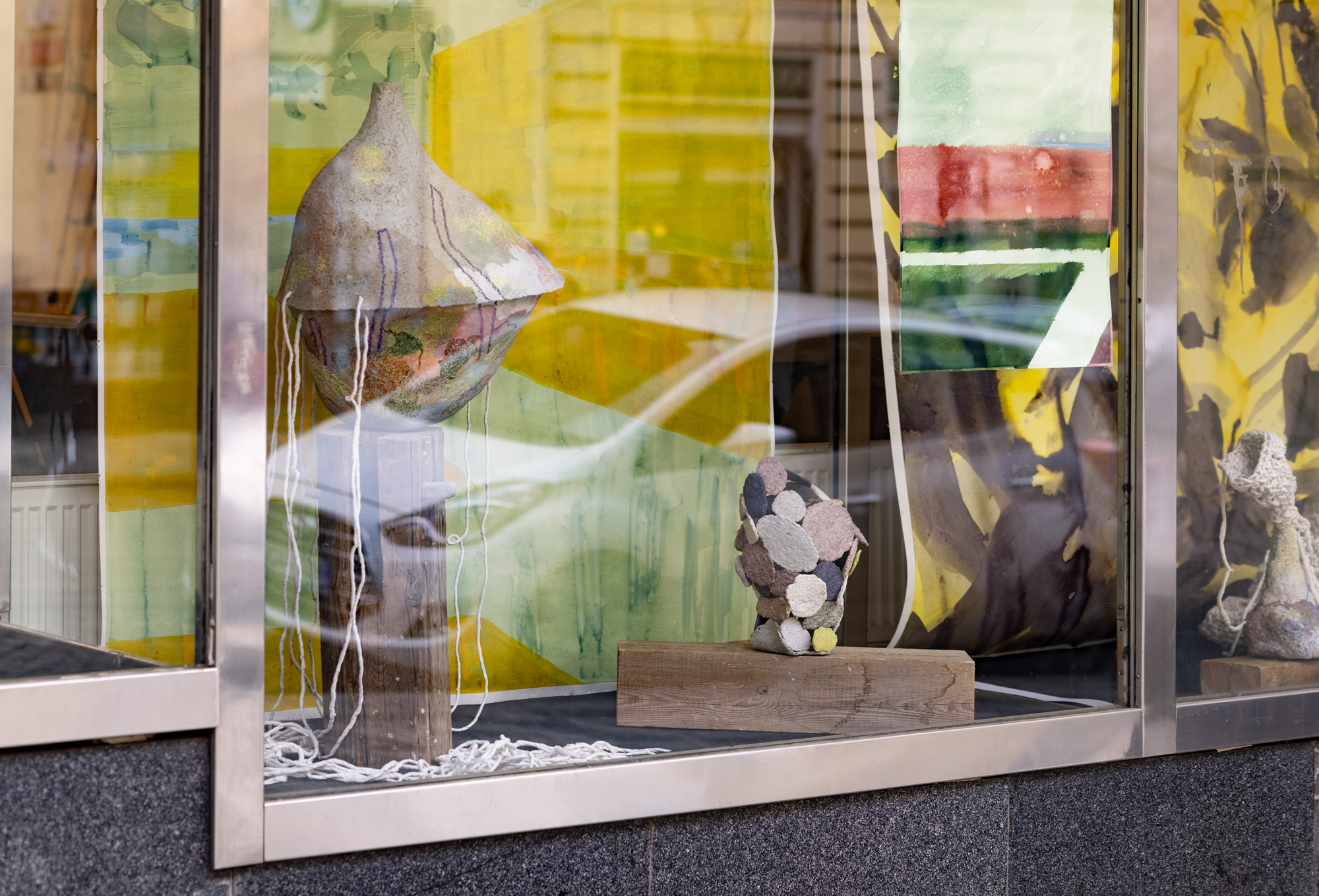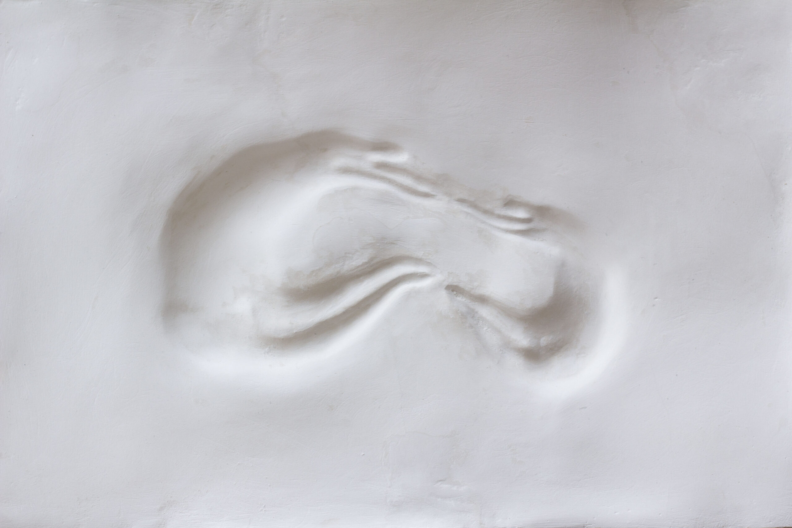 Kateřina Šťastná (1996, Olomouc) se ve své tvorbě dlouhodobě zabývá vztahy, které vznikají v důsledku interakce těla s jeho bezprostředním okolím. Zaměřuje se na moment kontaktu a následnou deformaci, která ze vzájemného ovlivnění přirozeně vyplývá. Stejně jako každý nádech částečně deformuje tvar lidského těla, tak i specifický tvar tělesné schránky definuje momentální podobu hmoty dechu. V sochách, objektech a reliéfech, ale také v pracích z textilních materiálů pracuje s vlastní představou o tom, jak by mohl dech vypadat v okamžiku tohoto vztahu.
