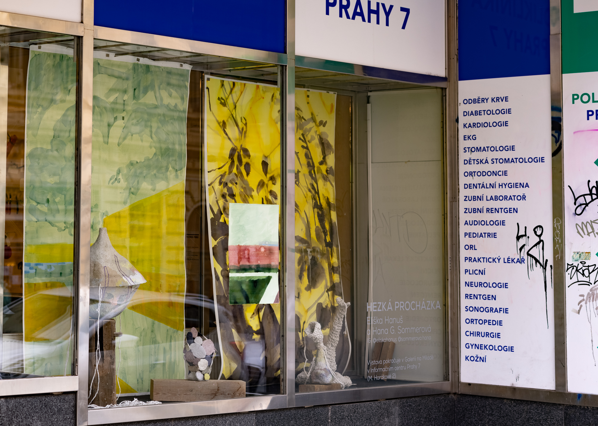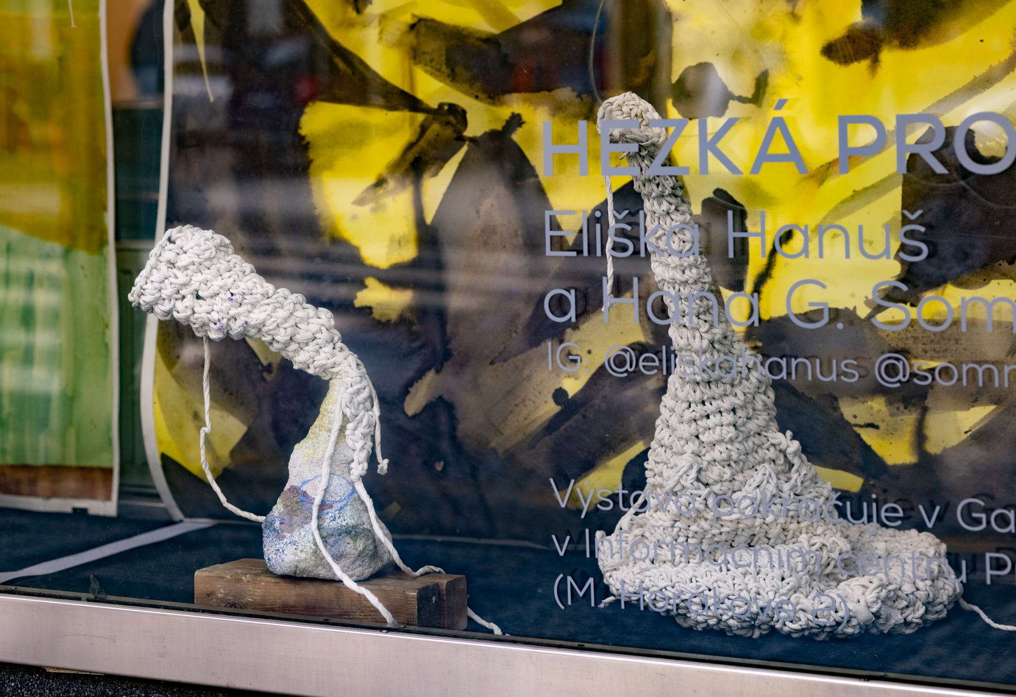 Umělkyně dlouhodobě spolupracují a tvoří autorskou dvojici. Autorky se věnují zpracování motivů z nejbližšího okolí. Jedná se o pohledy do ulic, zahrad a přírody. Hledají cestu, jak vyjádřit běžnou realitu vlastním tvaroslovím. Oběma je blízká nadsazená barevnost a redukce reality, kterou každá využívá v jiné výtvarné technice. Průsečíkem výstavy je společný zásah vizuální instalací do výstavního prostoru.