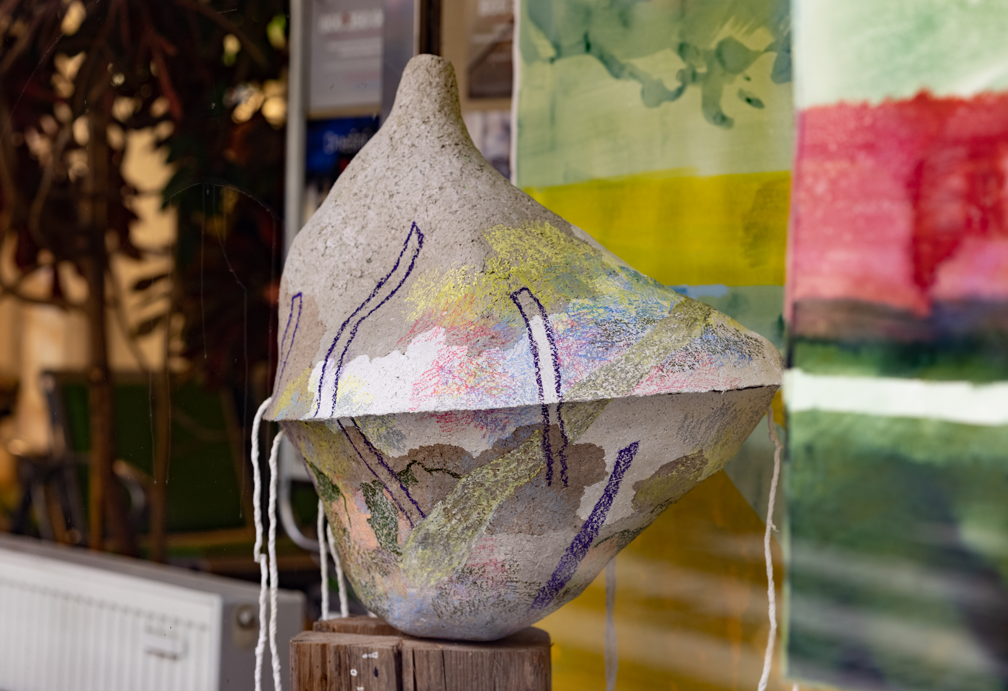 Viktoria D’Agostino (*1993) pracuje s malbou, jako s narativním médiem, v jejích obrazech se objevují krajiny, nedosažitelné vrcholky hor a hvězdy. Barvy svítání plynule přechází jedna v druhou, jako vzpomínky na sen z předešlé noci. Transformativní vlastnosti díla dosahuje formou kolektivního snění. Další objekty, jako jsou sošky ze slámy, masky a keramika, jsou převážně vázány na sezónní rituály spojené s krajinou a přírodními duchy. Viktoria studuje ve 2. ročníku na AVU pod vedením Josefa Bolfa, Jakuba Hoška a Nik Timkové.