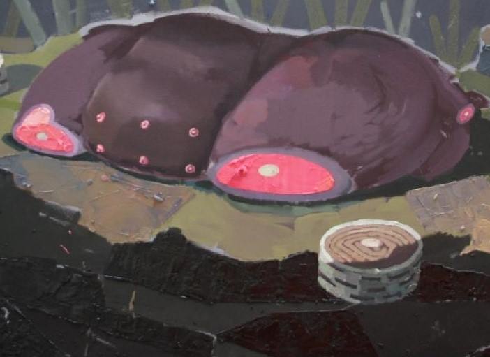Štěpán Rubáš je studentem Akademie výtvarných umění v Praze v Ateliéru intermediální tvorby I u Mileny Dopitové. Malba se v jeho podání stává živým procesem, který odráží aktuální dění. Jednotlivá díla tvoří jakési rekvizity symbolizující něco dočasně vytrženého z kontextu, třeba i trochu falešného. Jsou součástí reálných momentů nebo se mohou objevit v ryze fikčním světě. Autorovy malby reflektují aktuální myšlenky, intimní zpovědi nebo vize inspirované tancem, jako je omezení pohybu, ochabování těl tanečníků, rozpojení, nemožnost předávání či sdílení. Na výstavě uvidíte i větší formáty, které malíř vnímá jako určitou oponu, za kterou se lze v nejistotě ukrýt či jako vymezený prostor pro pohyb. Malby, v autorově vnímání „rekvizity“, jsou pro něj prostorem pro budoucí akci, choreografii či inscenaci.