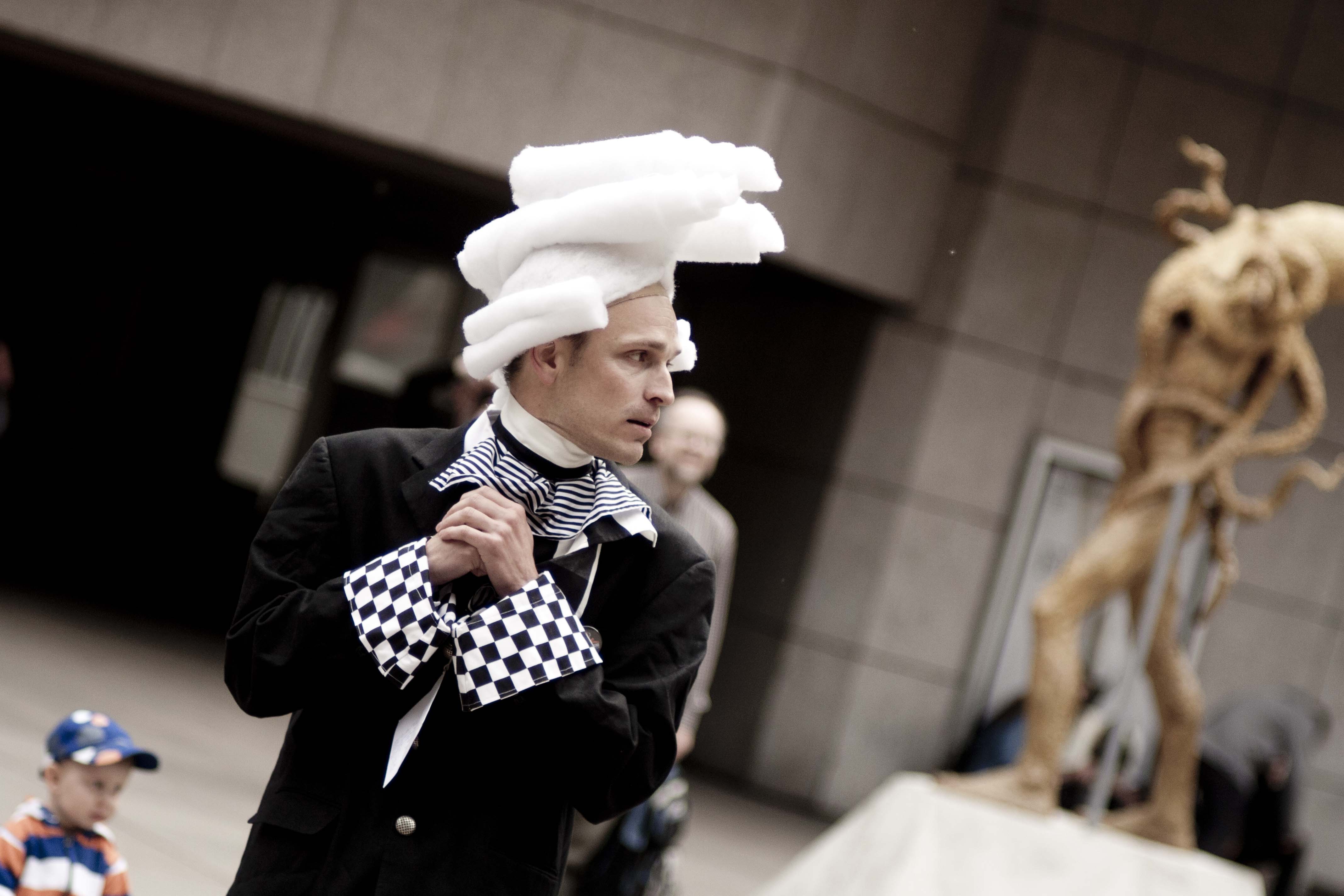 Několik obrazů ze slavné učebnice učitele národů v pouliční úpravě pro zvídavý (o)kruh diváků. Mini inscenace na chůdách rozehrávající barokně-moralistní písemné prameny. Variace na několik hesel z přelomové obrázkové encyklopedie J. A. Komenského Orbis Pictus (1658).