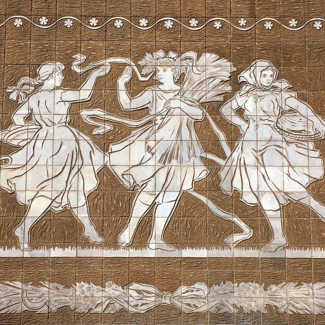 Reliéf se dvěma dívčími akty trhajícími hrozny je dílem sochaře Jiřího Ducháčka. Umístěn je nad vstupem do sedmipatrového funkcionalistického domu paní Kreisingerové, který navrhl architekt Josef Chochol. Tehdy se jednalo o jeden z nejmodernějších a nadstandardně zařízený nájemní dům v Praze.