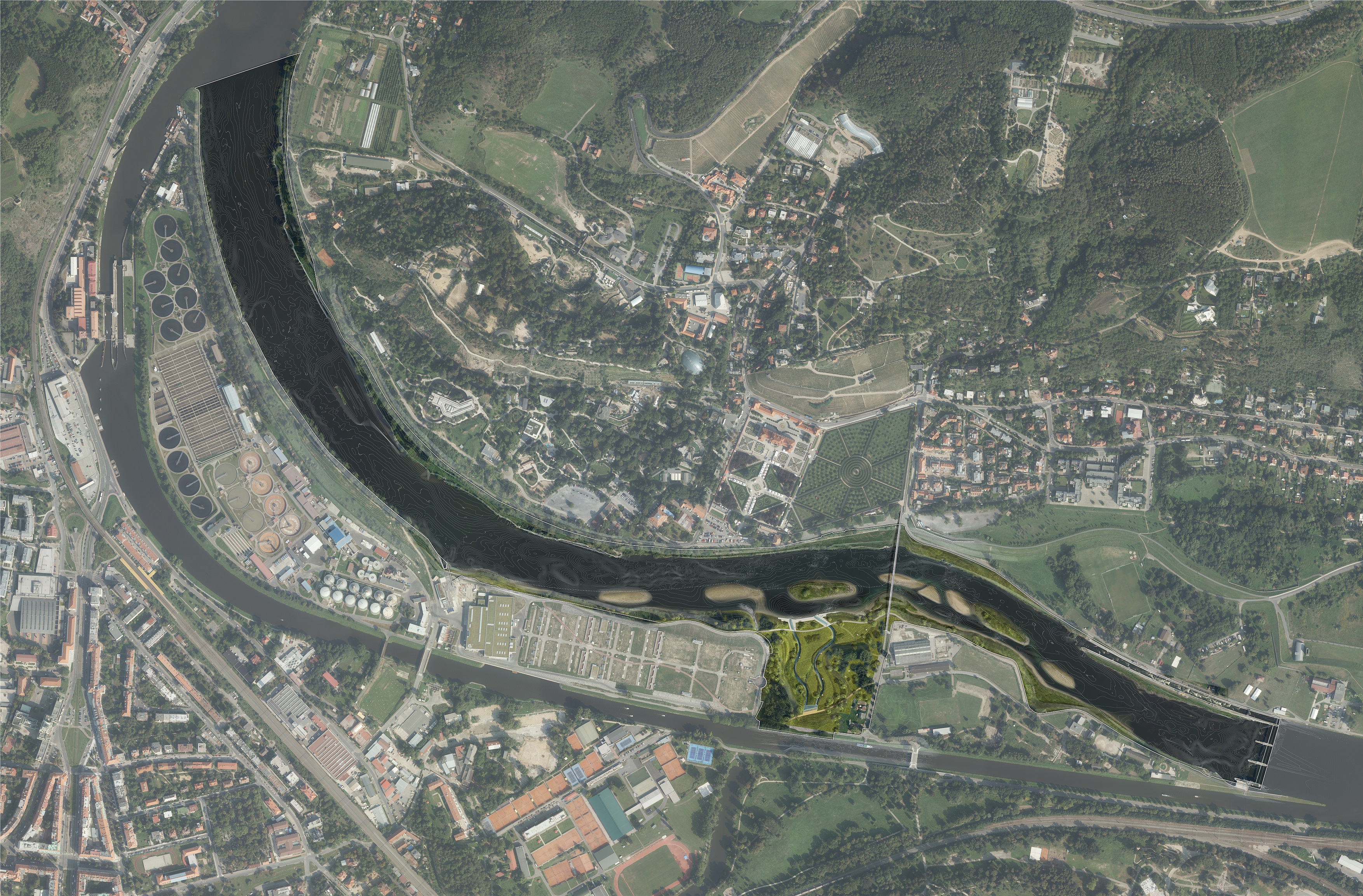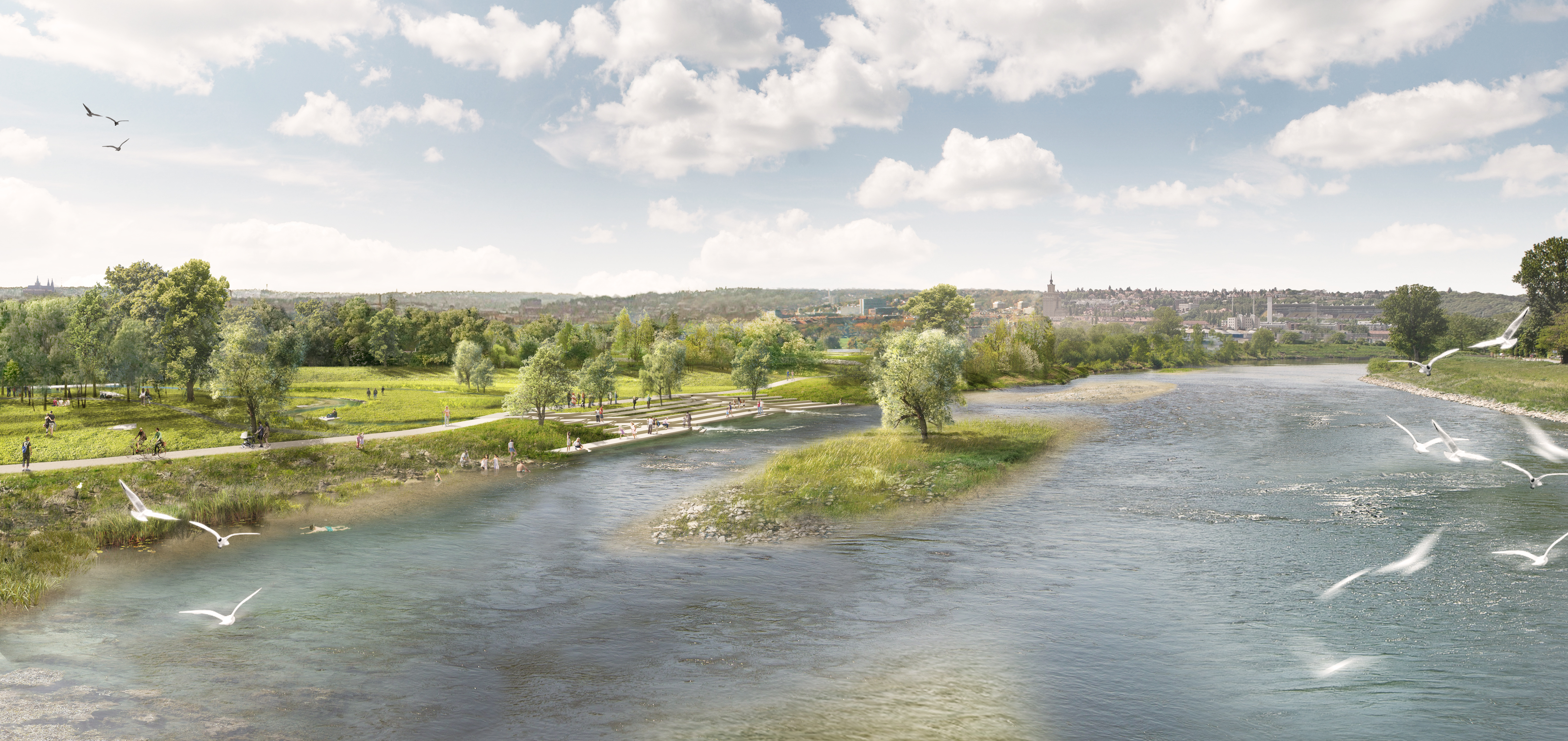Návrh je postaven na dvou základních prvcích. Jedním je rozšíření hlavního koryta řeky a vytvoření štěrkových ostrovů, které se budou v čase proměňovat. Tato místa budou ponechána přírodě a jejímu přirozenému vývoji.