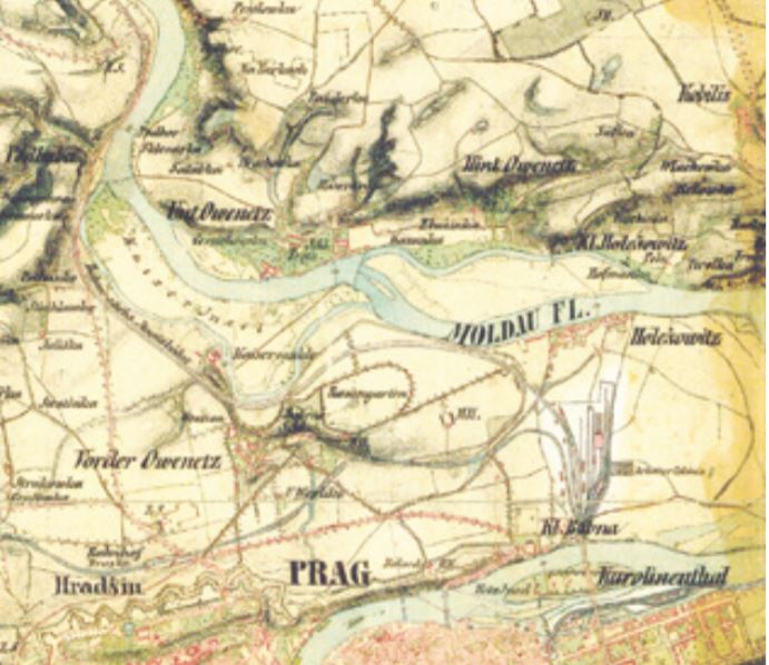 Železnice ve 40.letech 19.století jako první protnula původní záplavovou nivu a zahájila tak éru moderního využívání trojského údolí, které si povahy řeky a jejích příběhů všímalo jen málo. Na mapě vlevo z období let 1836—52 je vidět ještě meandrující říční rameno, podél něhož vede česko-saská státní dráha. Rameno bylo o něco později zaslepeno při stavbě plavebního kanálu, zbylo z něj jen parkové jezírko na kraji Stromovky, známé jako Malá říčka.