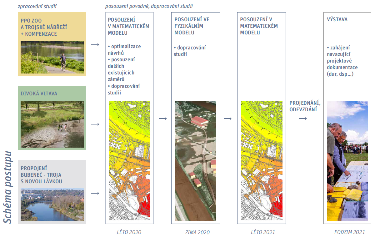Soubor projektů „Revitalizace a protipovodňová ochrana Trojské kotliny“ vychází z Koncepce a Akčního plánu Císařského ostrova a je pokračováním v dlouhodobém postupu v řešení protipovodňové ochrany v Trojské kotlině. Z hlediska protipovodňové ochrany je Trojská kotlina nejužší a jedno z nejkritičtějších míst v Praze. Je proto nutné jednotlivé projekty a záměry koordinovaně posoudit na existujícím matematickém a fyzikálním modelu z hlediska vlivu na průchod velkých vod a jejich negativní vliv adekvátně kompenzovat. Jednotlivé projekty je nutné také navrhovat z celostního hlediska a citlivě je začleňovat do krajiny. Cílem souboru projektů je zlepšení protipovodňové ochrany zoologické zahrady a její citlivé začlenění do nivní krajiny, přírodě blízká revitalizace řeky a řešení nových propojení, dostupnosti, prostupnosti a vytvoření nových přírodních a rekreačních ploch a kvalitních veřejných prostranství.