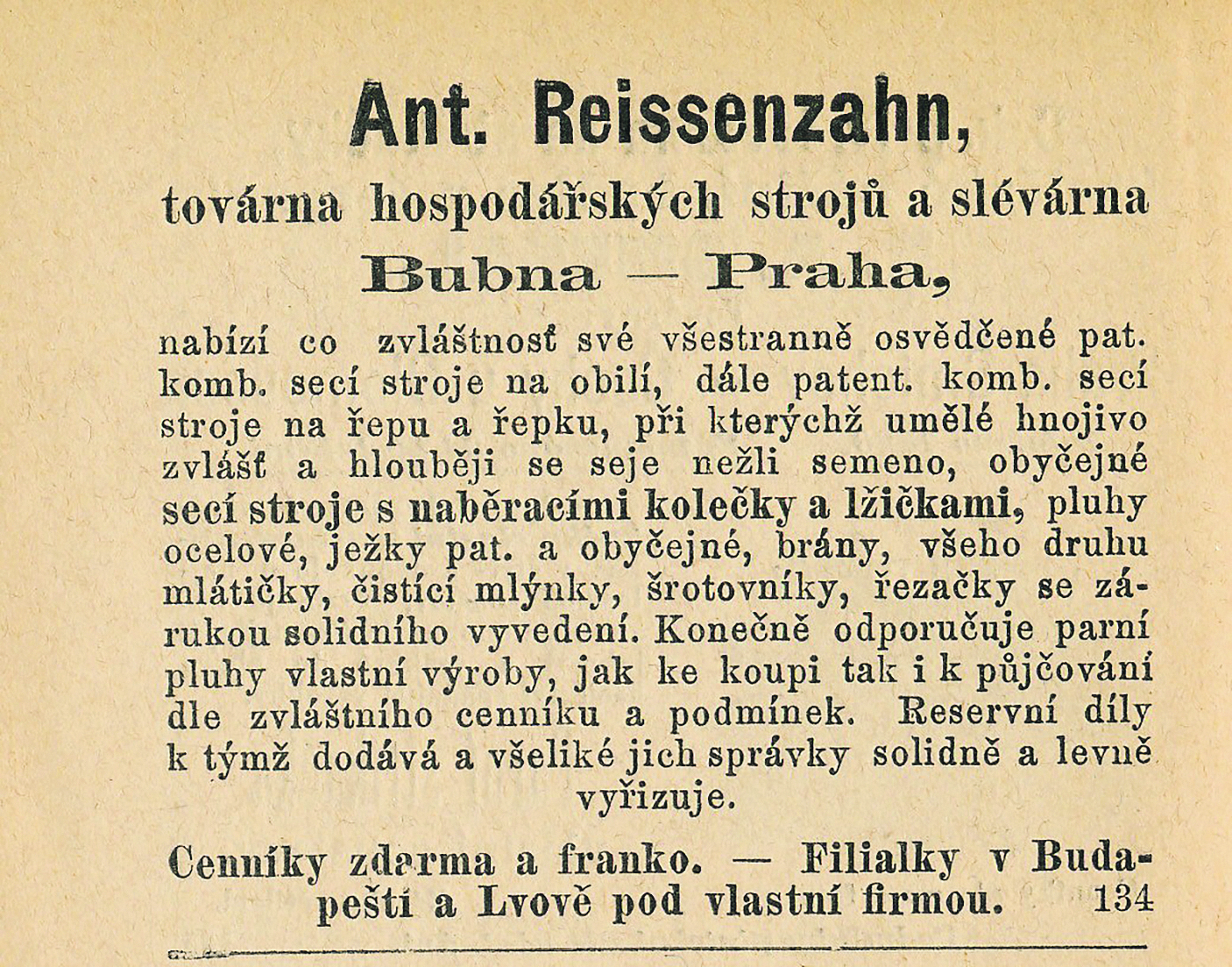 Reklama na výrobky firmy Reissenzahn z katalogu k Jubilejní zemské výstavě v roce 1891