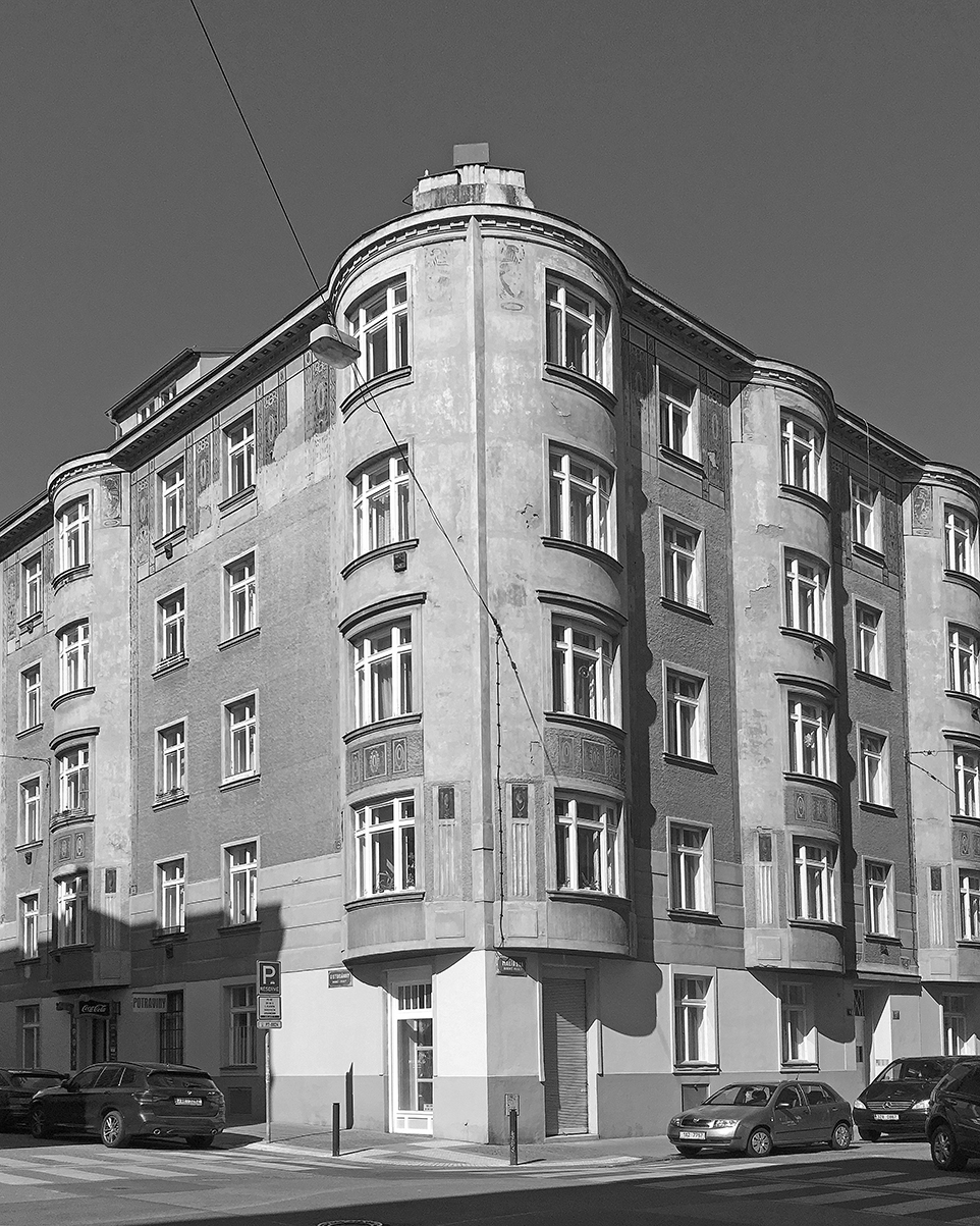 Dům v Malířské 9, kde umělkyně tvořila a krátkou dobu i bydlela