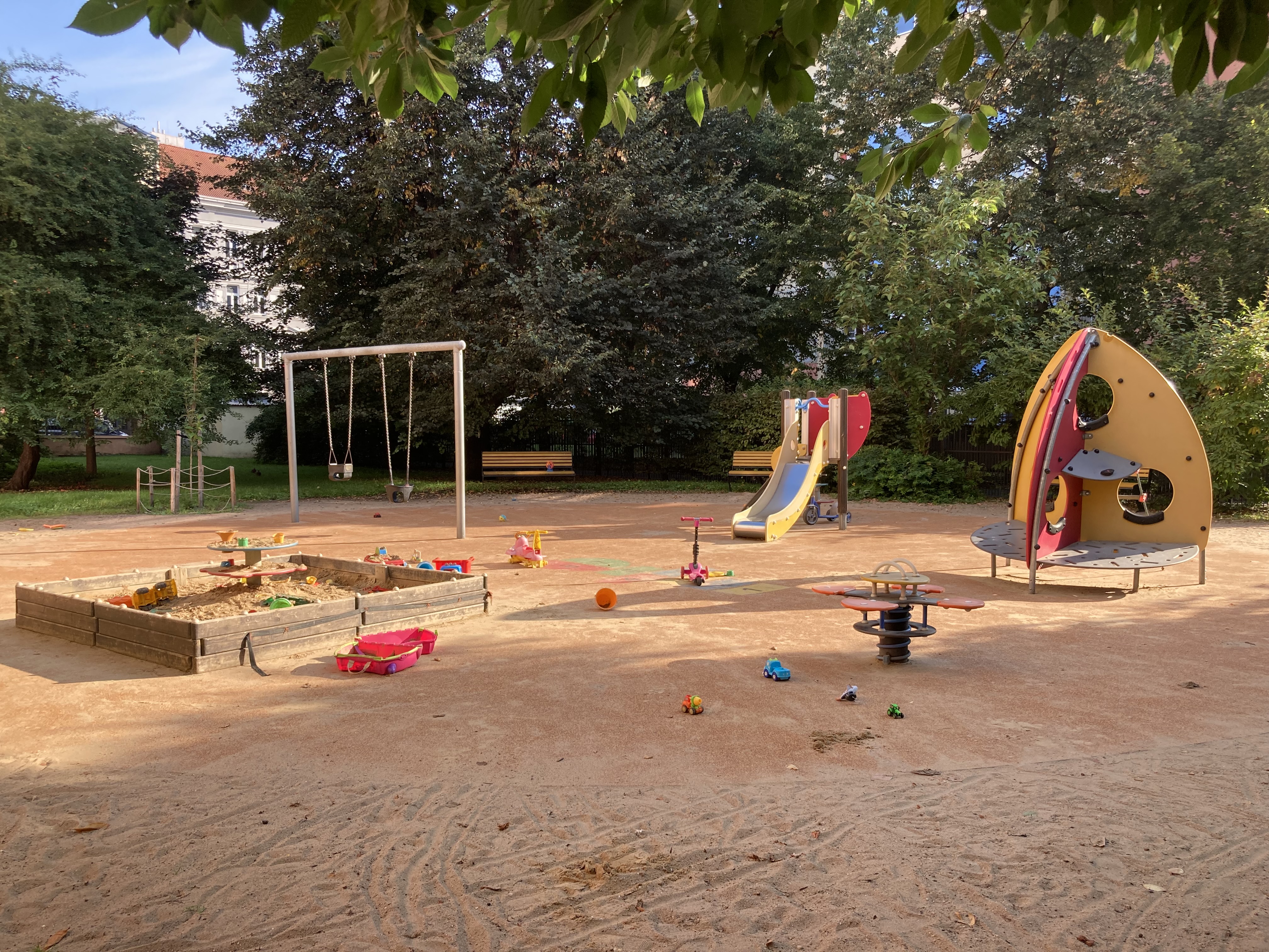 I pro rodiče menších dětí, které si na velké prolézačky ještě netroufají, máme dobrou zprávu. Na hřišti najdete bezpečnou skluzavku, malé pískoviště a zábavně-poučnou zvířátkovou tabuli.