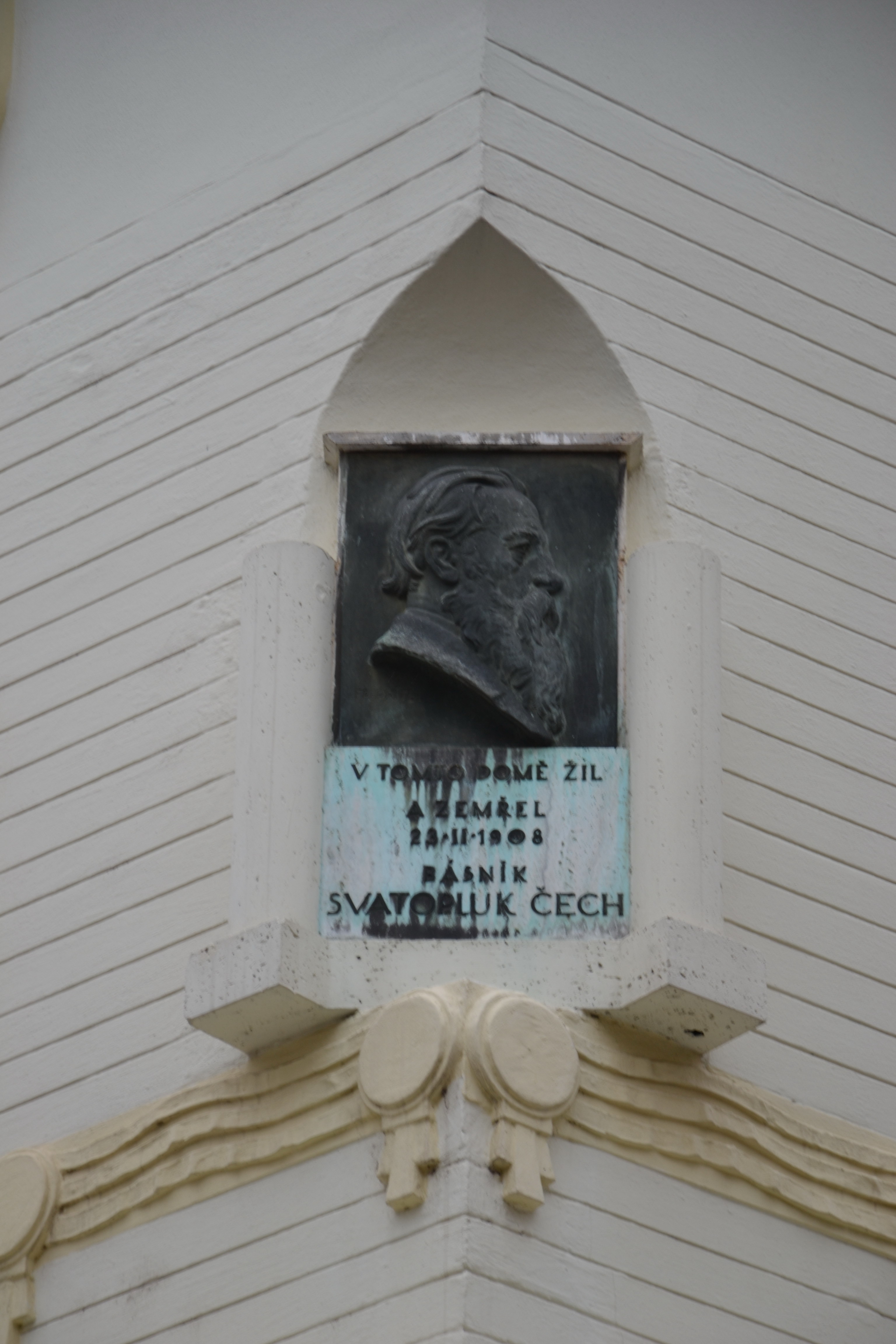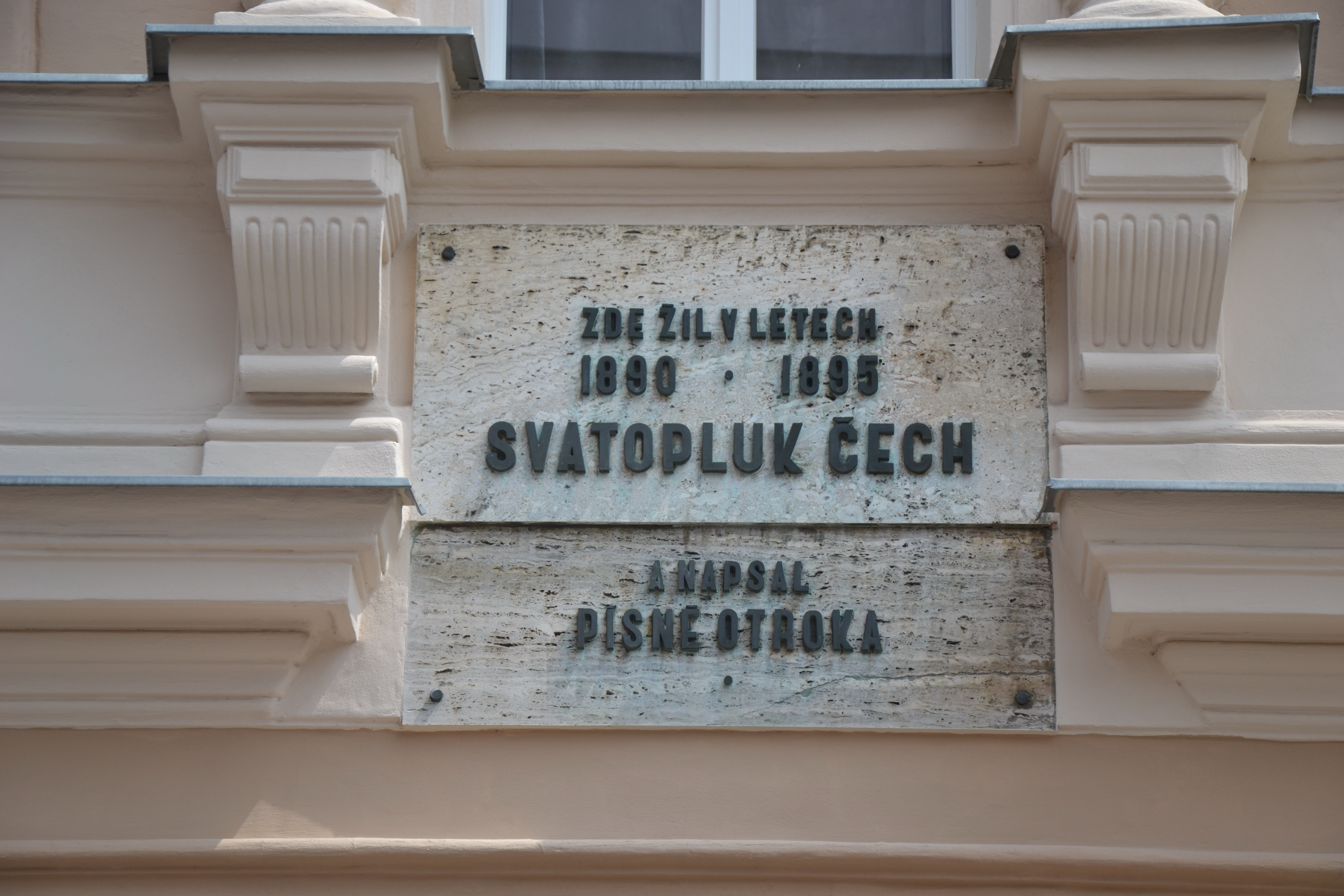 Zcela výjimečnou osobností v kontextu připomínek na pamětních deskách v Praze 7 je básník a literát Svatopluk Čech. Autor legendárních Výletů pana Broučka nebo Písní otroka totiž v naší městské části vystřídal tři, a budeme-li zahrnovat do Prahy 7 i Troju, tak dokonce čtyři adresy. Žil postupně v domech v Letohradské čp. 557 a Strojnické čp. 707. V posledních letech života, dělil svůj pobyt mezi letní vilu v Troji (Pod Havránkou čp. 134) a zimní byt v domě na rohu Šimáčkovy a Janovského (tehdy se tato část ulice jmenovala U Kapličky) čp. 908, kde také v neděli 23. února 1908 zemřel. Na tomto domě je umístěna pamětní deska s reliéfem, připomínka básníkova „pobytu“ v letech je i na zmíněném domě čp. 557 v Letohradské ulici, kde dnes sídlí Divadelní klub Letka a stejnojmenná kavárna.