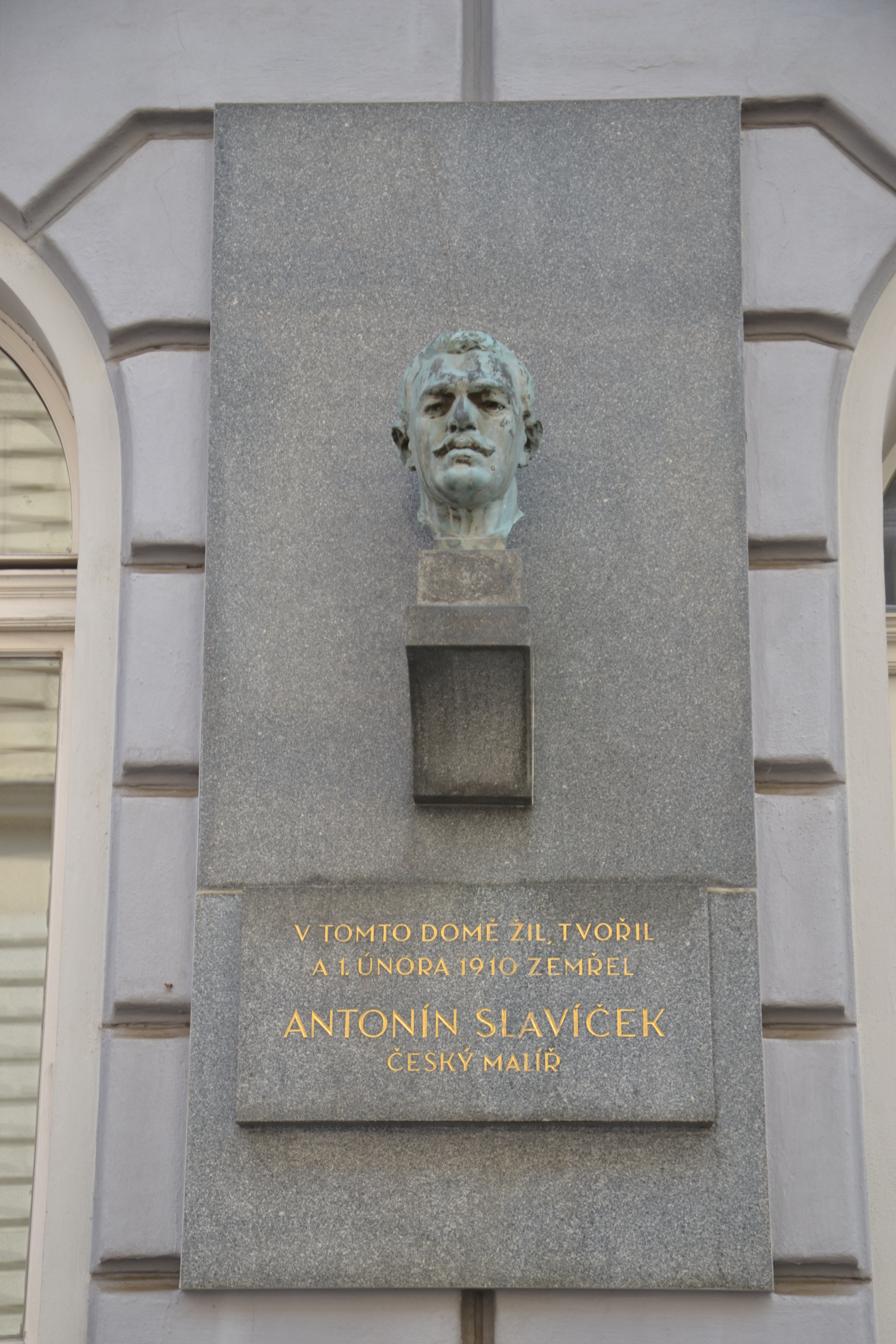 Malíř Antonín Slavíček byl bezesporu jedním z nejvýznamnějších umělců, kteří spojili svůj osud s Prahou 7, resp. Letnou. Pražský rodák Slavíček je považován za pionýra českého impresionsimu. Studoval v letech 1877-1899 na výtvarné akademii pod vedením Julia Mařáka. Studium často přerušoval, navíc se odklonil od mařákovského realismu. V roce 1895 pojal za manželku Bohumilu Brynychovou, která pocházela z bohaté sedlácké rodiny, manželé tak netrpěli hmotným nedostatkem. Z manželství vzešly tři děti – Eva, Jiří a Jan. Slavíček se ve své tvorbě zabýval zejména krajinomalbou – nejznámější díla vznikala během pobytů v Kameničkách u Hlinska. Od roku 1905 se začal také věnovat pražským motivům. Do pavilonu hlavního města Prahy výstavu živnostenské a obchodní komory v roce 1908 namaloval dvě rozměrná plátna – pohledy na Prahu – z Ládví a Letné. Po této významné akci zasáhly Slavíčka těžkosti v osobním životě. Onemocněla mu manželka, ale především v srpnu 1909 prodělal záchvat mrtvice, který způsobil ochrnutí pravé poloviny těla. Malíř se sice pomalu zotavoval, ale ztrátu možnosti tvořit nakonec vyřešil dobrovolným odchodem ze života. Vdova Bohumila se provdala za malíře a Herberta Masaryka, syna pozdějšího prezidenta. Manželé také žili na Letné (v ulici Nad Královskou oborou), i Herbert ale umírá brzy – v roce 1915.