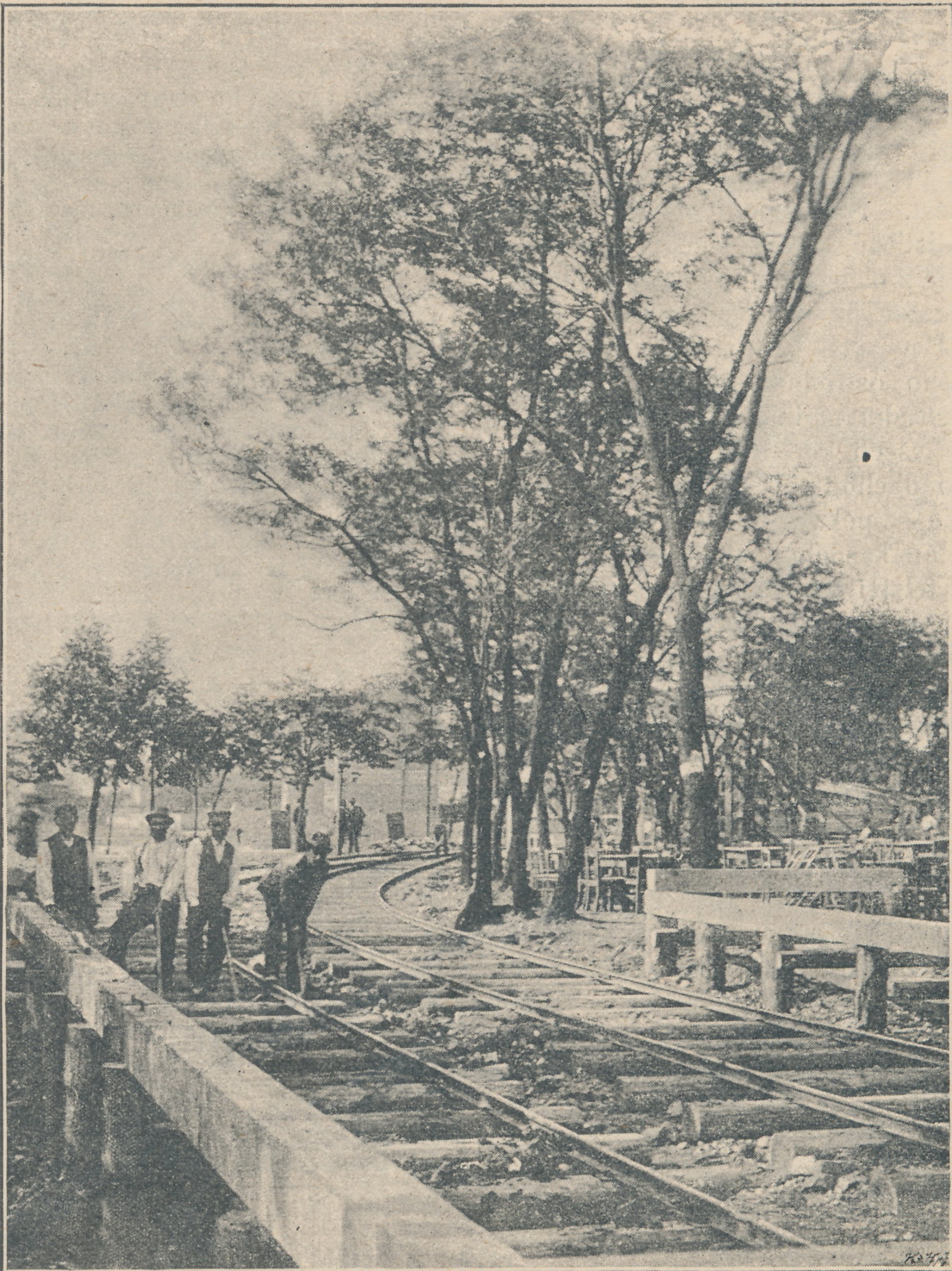 Trasa tramvaje vedla od Letenského zámečku Oveneckou ulicí ke vchodu do Stromovky. Na začátku své trasy protínala pozemky, kde dnes stojí Národní technické muzeum. Trať byla jednokolejná, pouze na jejím začátku a po trase byly krátké úseky se dvěma kolejemi. Za zámečkem také vyrostla budova stanice, která současně sloužila jako depo. Stavba byla na dnešní poměry neuvěřitelně rychlá – Křižík dostal povolení 30. dubna a již 18. července 1891 proběhla první slavnostní jízda.