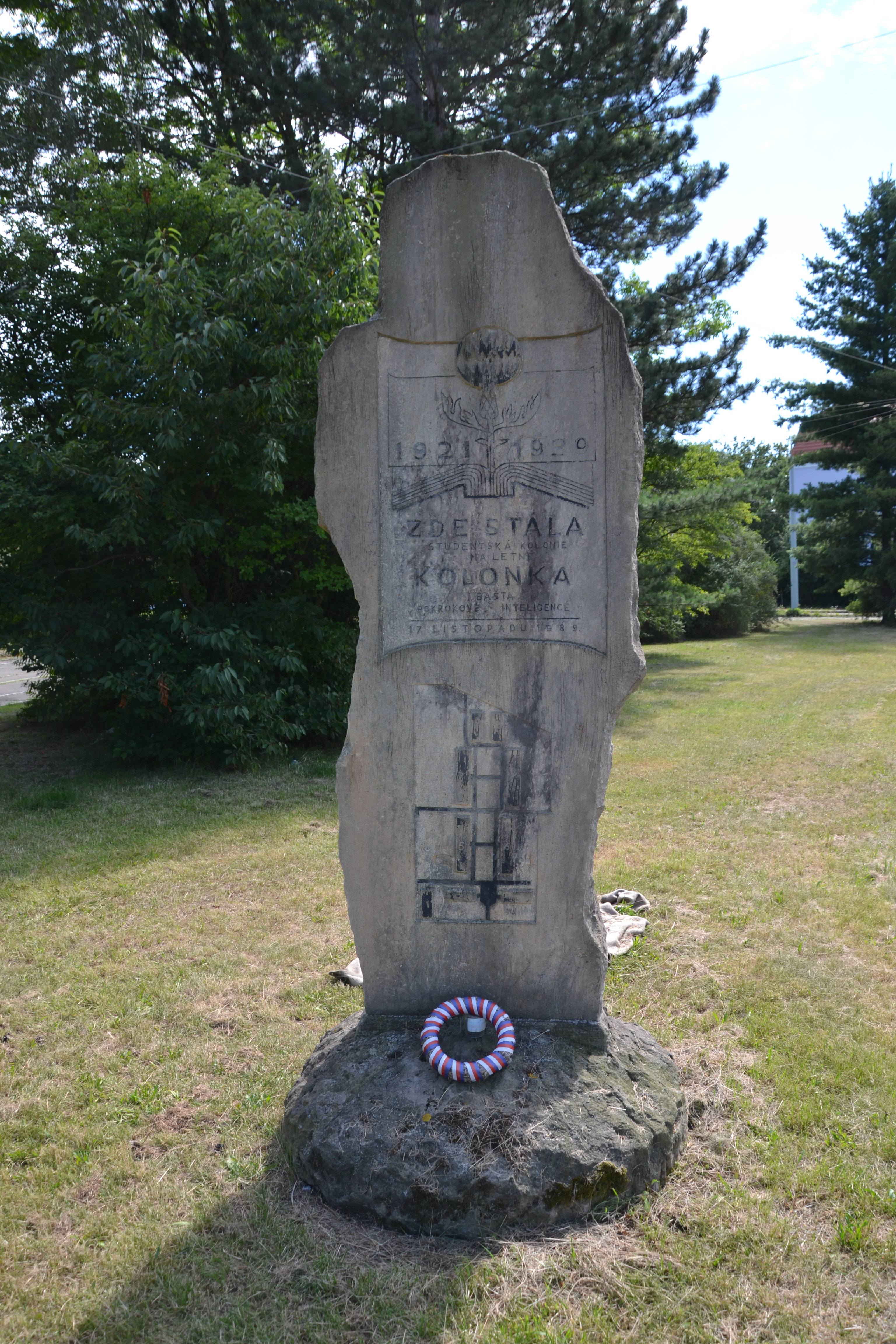 „Zde stála studentská kolonie na Letné Kolonka – bašta pokrokové inteligence“ stojí na obelisku, který stojí uprostřed tramvajové smyčky na Špejcharu. Po první světové válce čelila mladá čs. republika celé řadě problémů. Jeden z nich byl i palčivý nedostatek bytů. To se samozřejmě týkalo i vysokoškolských studentů. V září 1920 se proto zde z iniciativy profesora pražské vysoké školy technické Jana Záhorského začal stavět areál studentských kolejí. Základní myšlenkou bylo, že své domovy si studenti vystavějí sami. Pozemky na stavbu věnovalo hlavní město, významnou subvenci poskytlo i ministerstvo sociální péče, finančně přispěl i prezident Masaryk, řada firem poskytla materiál zdarma či s velkou slevou. Areál s celkem deseti pavilony navrhl mladý architekt Miloš Vaněček (1889-1954). Na začátku zde pracovalo až pět stovek dobrovolníků, po čase ale nadšení opadlo. Nakonec se podařilo areál dostavět a do devíti pavilonů se ve dvou vlnách (v září 1921 a v lednu 1922) nastěhovalo více než šest stovek studentů. Hlavní vchod do areálu byl z Badeniho ulice, vedlejší pak z Belcerdiho (Milady Horákové). Už v první desetiletí existence bydlela v Kolonce celá řada (později) slavných osobností – literáti A. C. Nor, Jan Šnobr nebo Vilém Závada, i další umělci – malíři František Kříž, Václav Trefil nebo Jan Brukner, sochaři Karel Lenhart, Cyril Zatloukal nebo průkopník multimediálního kinetického umění Zdeněk Pešánek. V prosinci 1927 postihl jeden z pavilonů požár, díky úsilí zdejších obyvatel se jej rychle podařilo obnovit. V druhé polovině třicátých let, přesněji řečeno v roce 1937, došlo k demolici čtyř pavilonů – zabíraly totiž místo pro plánovanou (a nikdy neuskutečněnou) stavbu Státní galerie. 17. listopadu 1939 byla pozatýkána celá řada zdejších obyvatel / studentů a internována v koncentračním táboře Oranienburg. Celý areál pak zabraly německé okupační orgány. Po válce se sem vrátili studenti a Kolonka fungovala jako kolej až do poloviny sedmdesátých let, kde zde vznikla tramvajová smyčka. Památník koleji Kolonka byl odhalen příznačně – 17. listopadu 1989, jen pár hodin před událostmi na Národní třídě.