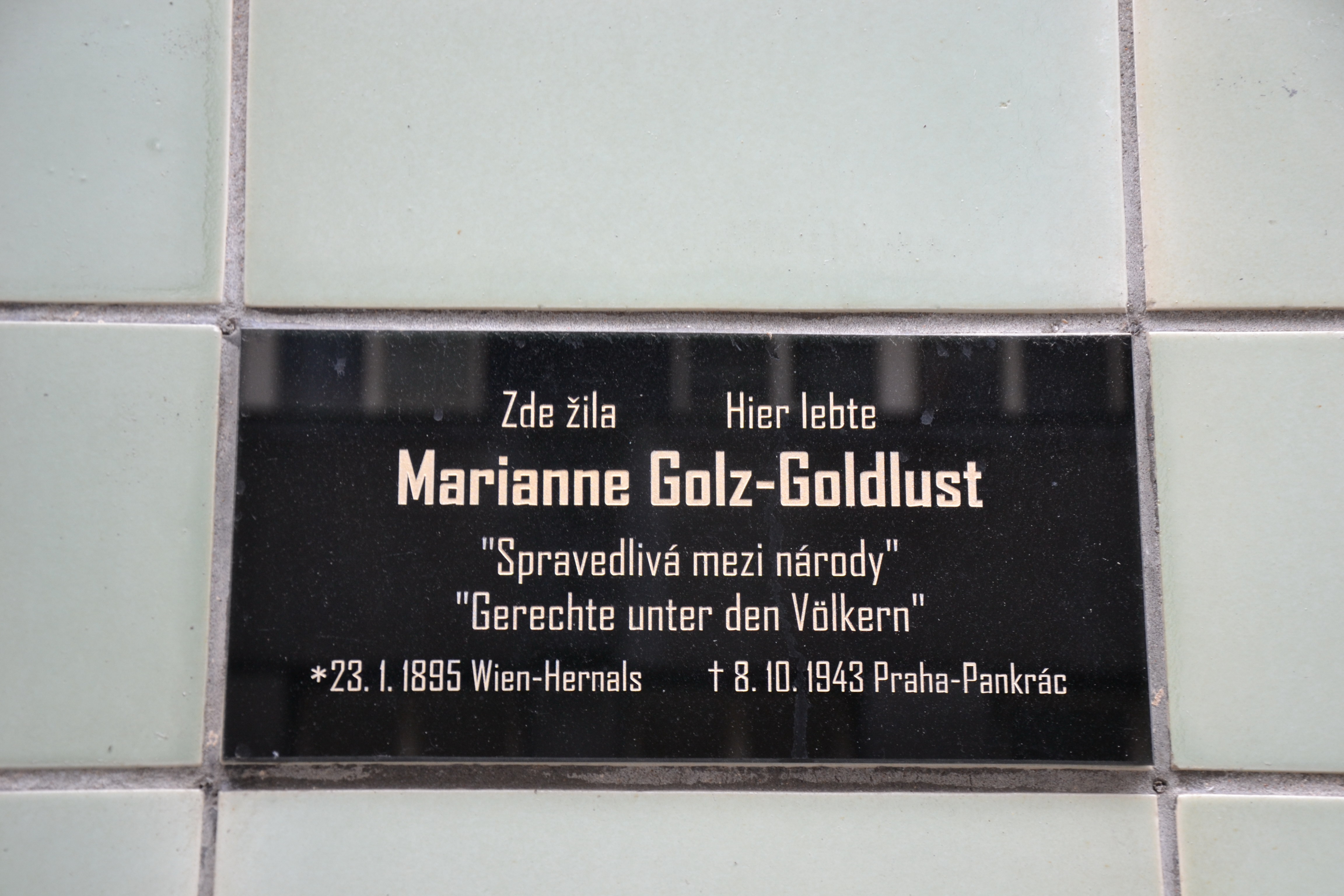 Operní zpěvačka, herečka a tanečnice Marianne Golz se narodila v roce 1895 ve Vídni polskému otci a české matce. Vystupovala pod uměleckým jménem Marianne Tolska, v letech 1922-4 byla členkou ansámblu divadla v Salcburku. V roce 1924 se přestěhovala do Berlína, kde se o pět let později provdala za židovského novináže a literárního editora Hanze Goldlusta. V době vzestupu fašismu v Německu se pár přestěhoval do Prahy. Marianne zde pracovala jako hudební kritička. Po obsazení Prahy Němci byl zatčen manžel Hanz. Marianne se podařilo jej z vězení dostat a následně mu zajistila odchod do emigrace do Velké Brtánie. Sama však zůstává v protektorátu a zapojuje se do odbojové skupiny, která pomáhá židovským obyvatelům k emigraci. Skupina byla nakonec v listopadu 1942 odhalena, Marianne Golz -Goldlust byla mezi zatčenými. Později byla odsouzena k trestu smrti a 8. října 1943 popravena. Za svou činnost získala Marianne v roce 1988 titul „Spravedlivá mezi národy“
