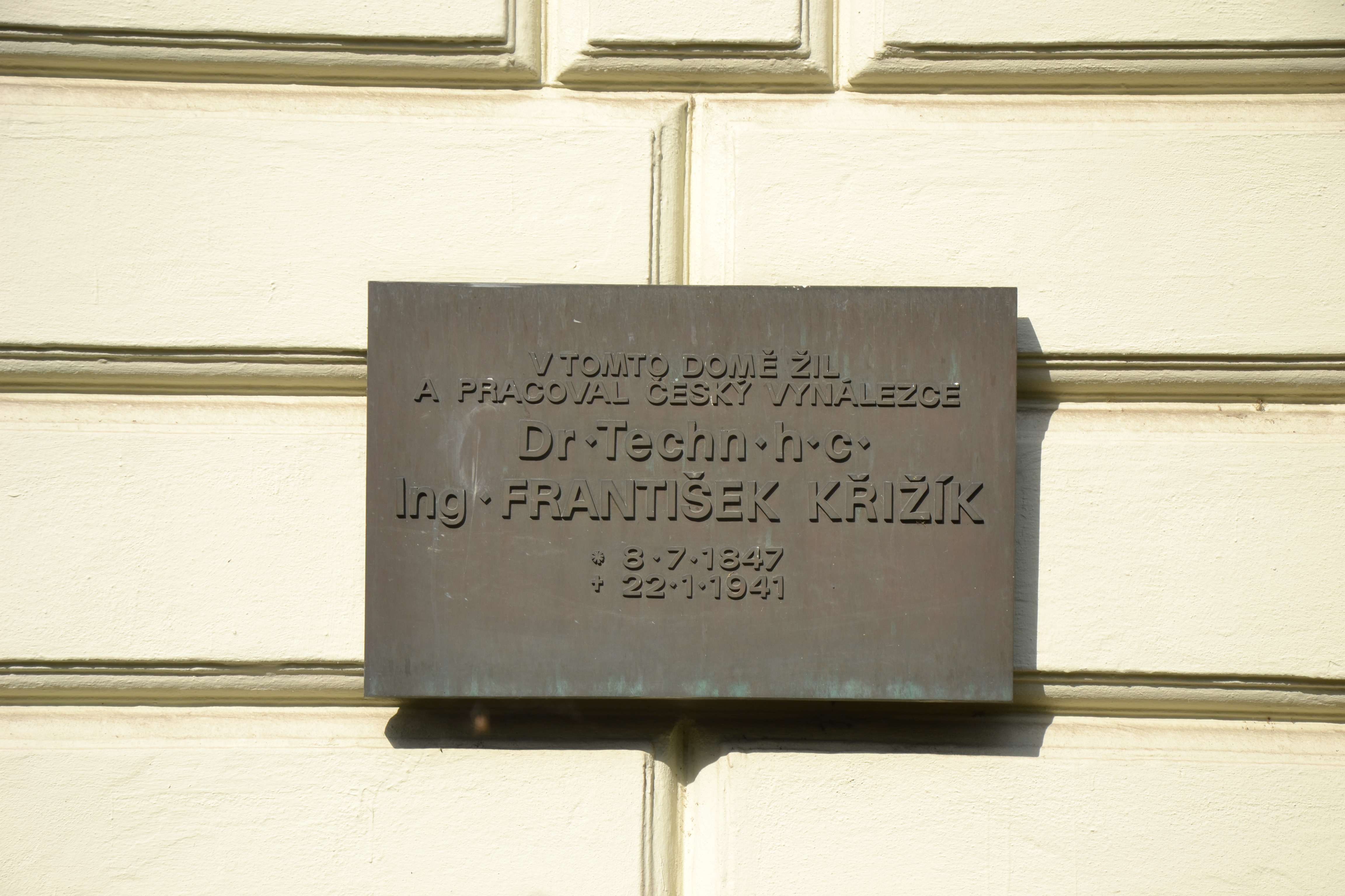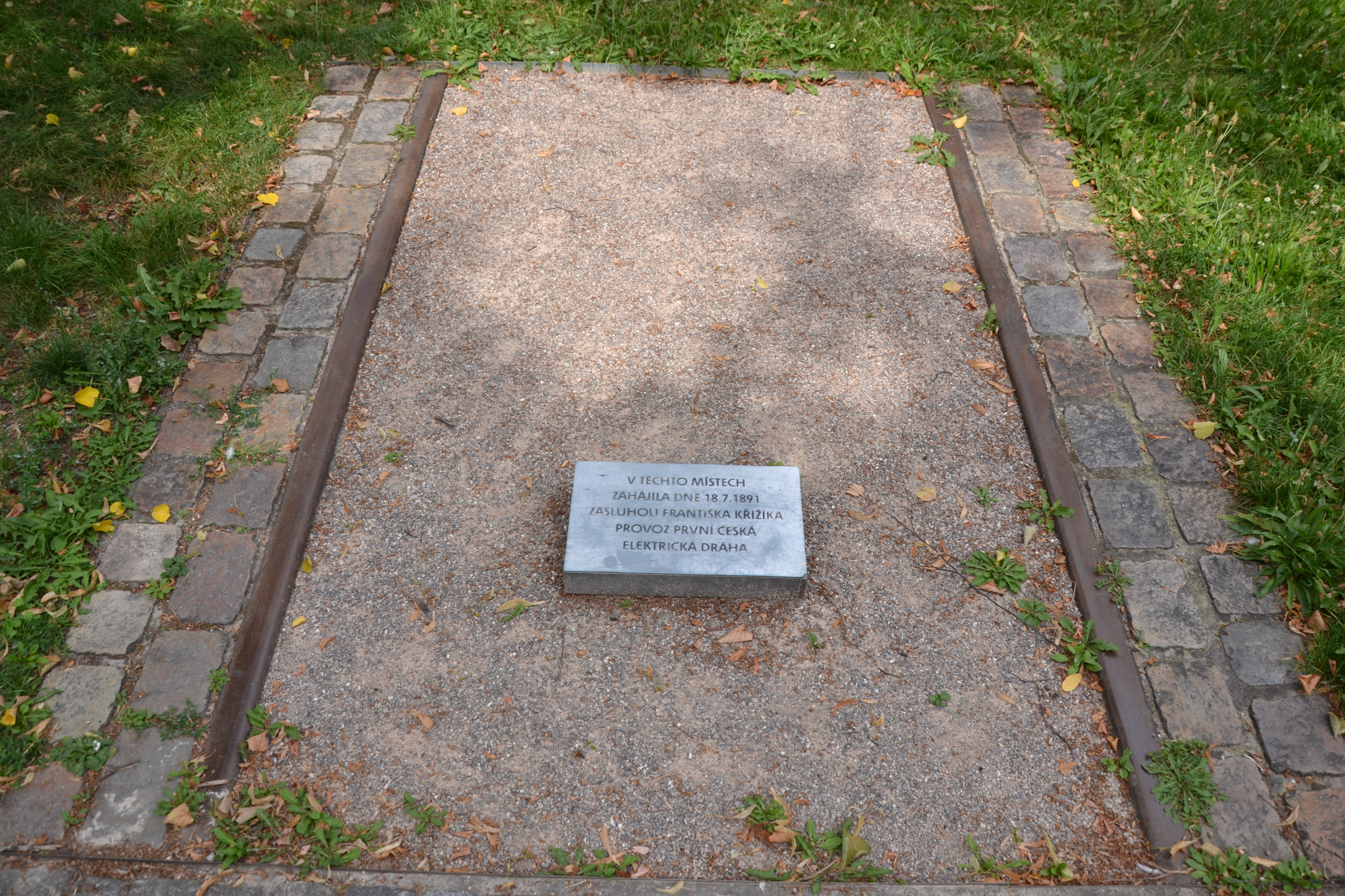 V kontextu pamětních desek V Praze7 velice netradiční je připomínka fungování první elektrické tramvaje na pražské Letné. Projekt této tramvaje je neodmyslitelně spjat s osobností Františka Křižíka. Tento vynálezce, podnikatel a vizionář připravil trať u příležitosti konání Jubilejní zemské výstavy v roce 1891.