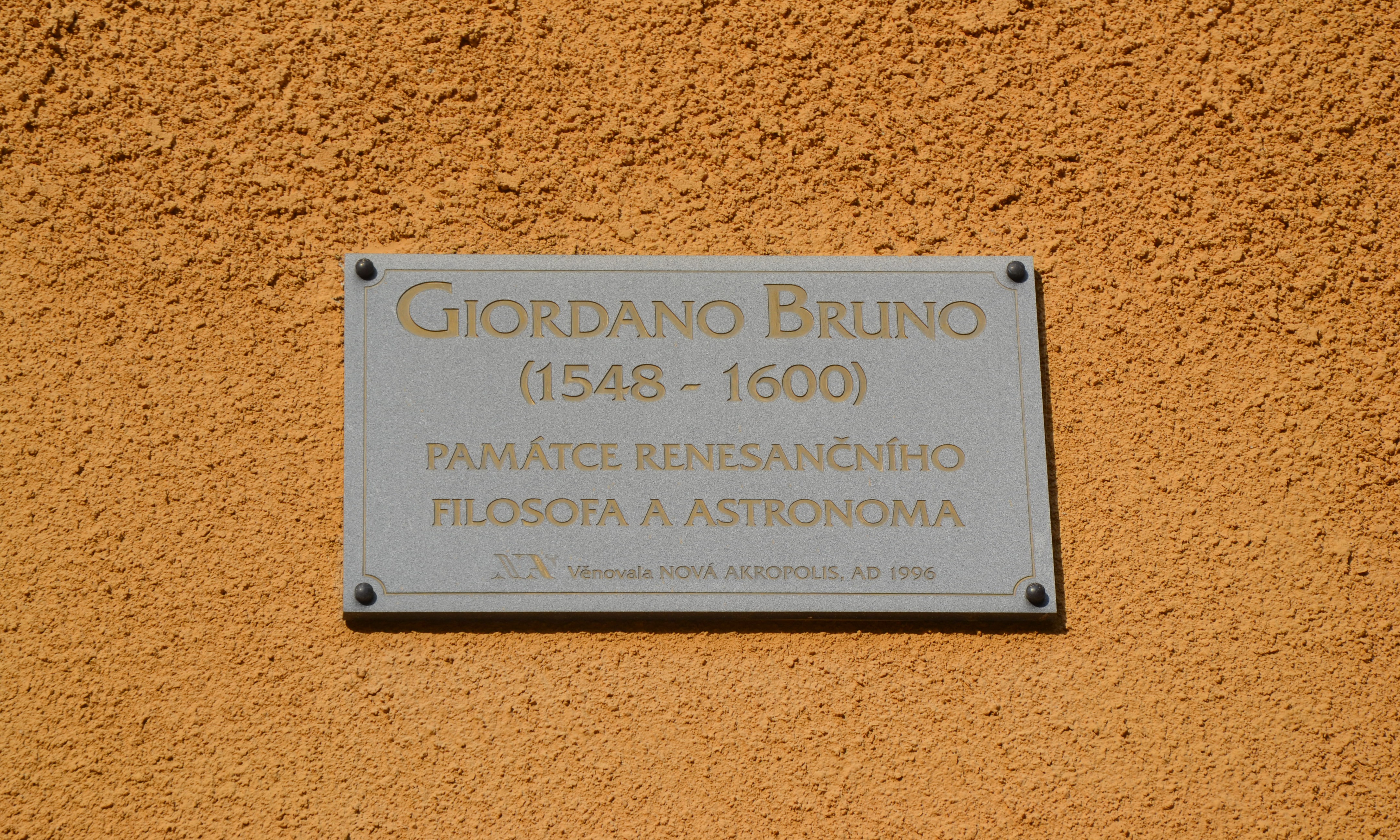 Na budově Planetária je umístěna jednoduchá pamětní deska věnovaná „památce renesančního filosofa a astronoma“ Giordana Bruna (1548-1600). Bruno, rodák z Nola u Neapole, byl členem dominikánského řádu, ovšem díky hlásání svých tehdejší církvi nepohodlných názorů se stal brzy štvancem, který se protloukal po Evropě. Nejprve pobýval v Ženevě, poté v Toulouse a Paříži. Pak byl pozván na univerzitu v Oxfordu, kde byl nakonec odmítnut po svůj nesouhlasný postoj k Aristotelovské filosofii. V letech 1583-85 pobýval v Londýně, kde vydal některé své významné spisy, např. O nekonečnu, vesmíru a světech. Poté přednášel v německých univerzitních městech Marburgu a Wittenbegu. V roce 1588 pobýval půl roku v Praze na dvoře císaře Rudolfa II. Po návratu do Itálie je zatčen a předán tamějším inkvizitorům. Své myšlenky – včetně té nejslavnější, že Země není středem vesmíru – odmítá odvolat a proto je v únoru 1600 v Římě upálen.