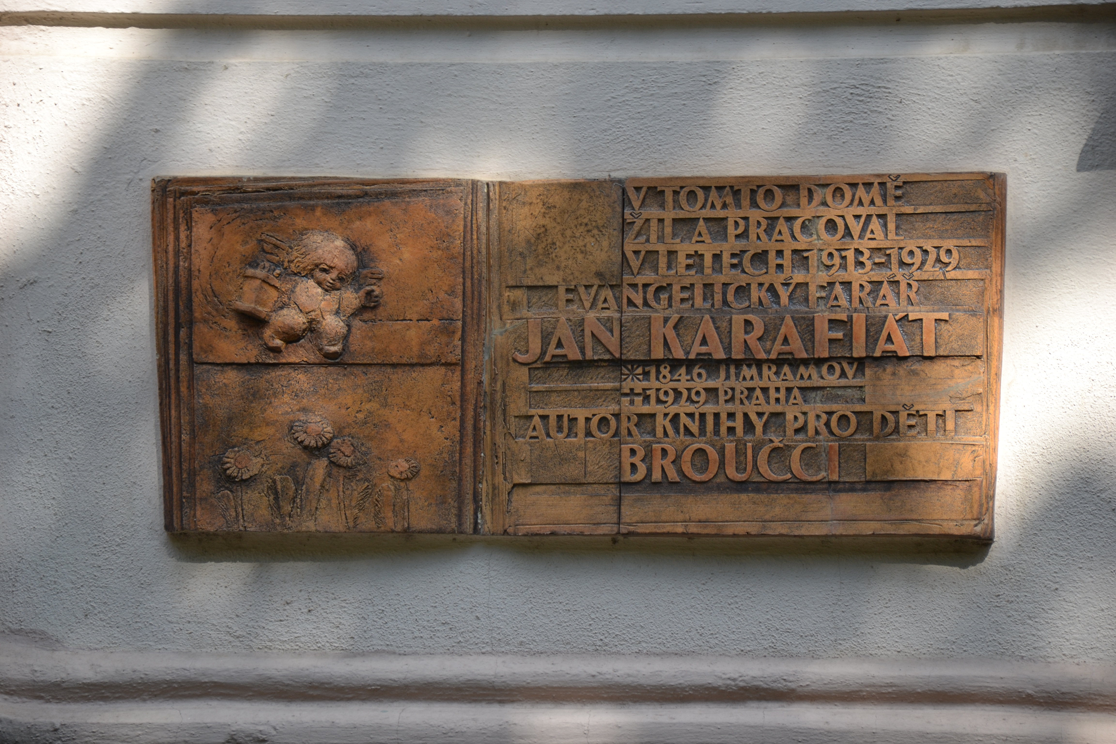 Pamětní deska je umístěna domě, kde Karafiát žil od roku 1913 až do své smrti v lednu 1929.