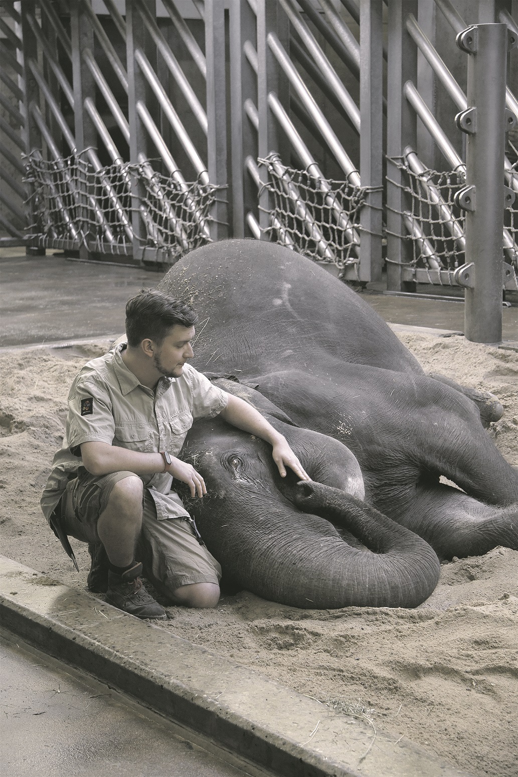 Zažil. I teď sloni dělají různé cviky, které mohou vypadat, že jsou cirkusové, třeba když na povel zvedají chobot nebo nohu, ale to je čistě jen proto, abychom se jim tam my chovatelé mohli podívat. Když jsem začínal, měli jsme jen tři nebo čtyři slony. Slon je přitom stádové zvíře a potřebuje kolem sebe starší i mladší zvířata, takže jsme jim vlastně nahrazovali člena stáda. Tehdy jsme se slony trávili dost času, možná i víc, než by bylo vhodné. Chodili jsme s nimi na procházky a snažili jsme se jim nějak vyplnit čas. Dneska je tu slonů víc a skupina více připomíná stav v přírodě. Máme i slůňata, a naopak se snažíme, aby kontakt s člověkem byl co nejmenší, aby zkrátka sloni mohli býti jen slony. Takže já po nich chci půl hodiny práce denně místo dřívějších čtyř až pěti hodin. Pak už jsou jen spolu a my se snažíme, aby je prostředí, ve kterém žijí, neustále motivovalo chovat se jako slon.